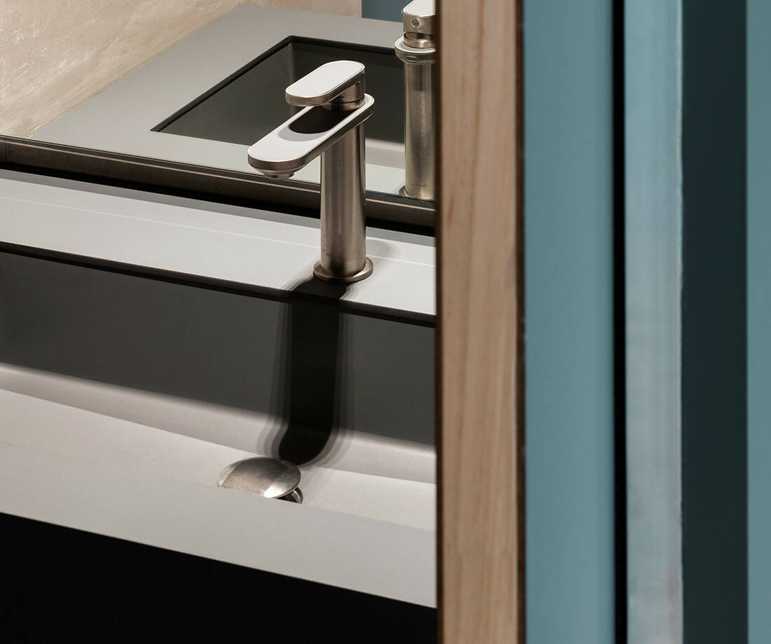 Una solució de lavabos integrats, dissenyats per a complementar els mobles suspesos de FENIX. Els lavabos de la col·lecció estan fabricats amb un «material compost mat» que encaixa a la perfecció amb la imatge i l'estil de FENIX: una integració estètica entre el lavabo, el taulell i el disseny del bany.